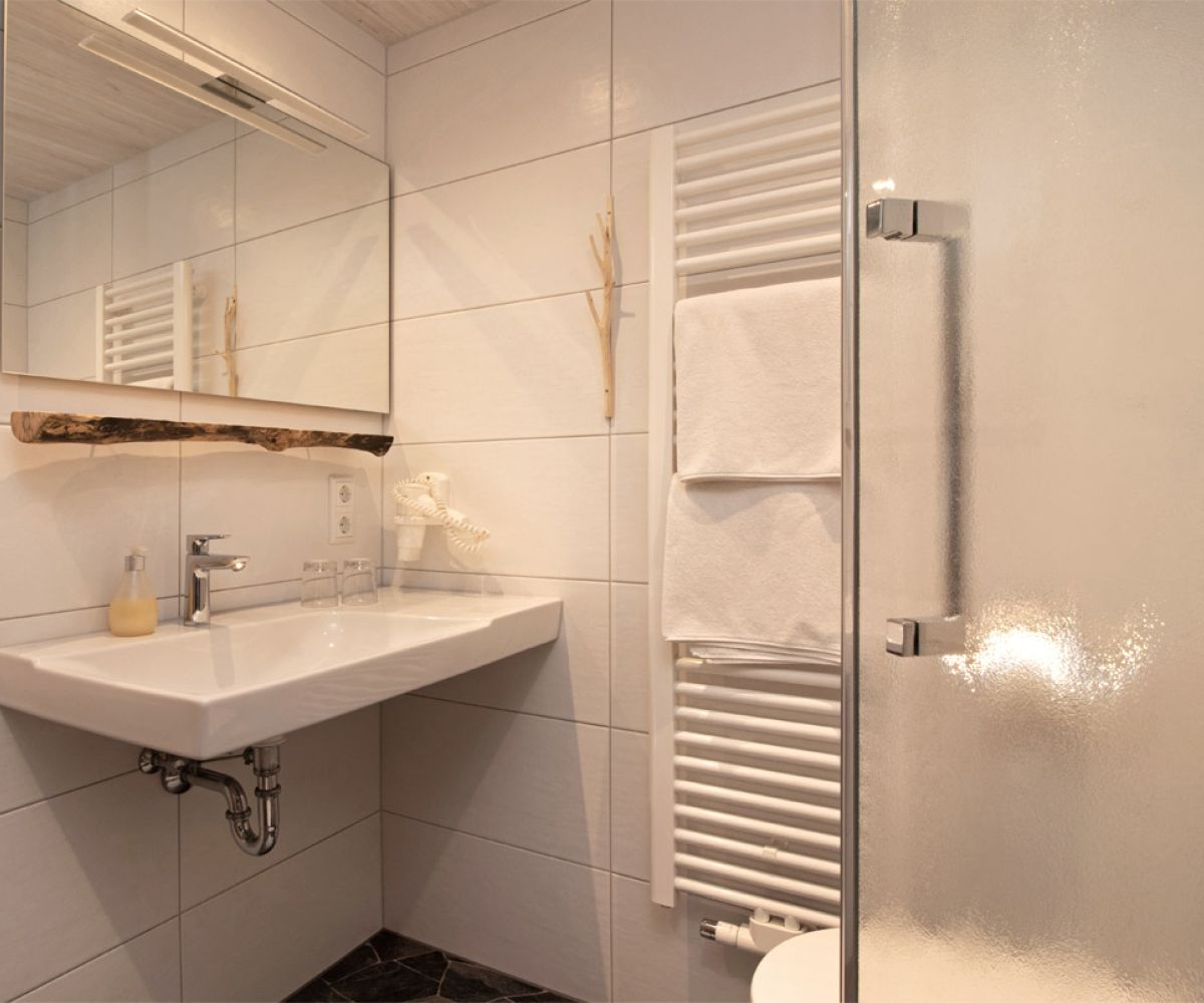 Komfort mit Dusche/WC, Insektenschutz (im Schlafzimmer), Fernseher mit SAT-TV, regionalem Frühstück & Parkplatz direkt am Haus.